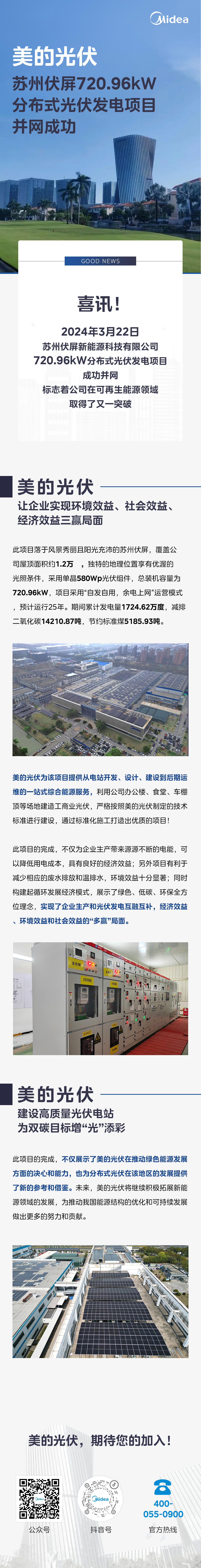 美的光伏蘇州伏屏720.96kW分布式光伏發電項目并網成功